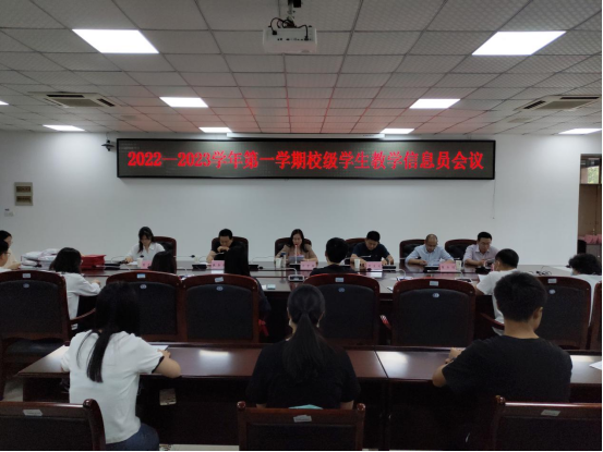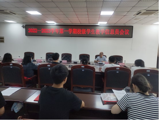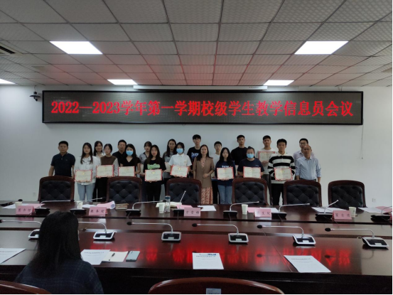 9月22日下午,2022—2023学年第一学期校级学生教学信息员会议在东区逸夫楼第一会议室召开,教务处唐永刚副处长、发展规划处董全德副处长、后勤与基建管理处周霁野副处长、党委学生工作部贾学斌副部长、图书馆武莉科长、发规处陶兴魁科长和新老两届校级学生教学信息员参加会议,会议由发规处方雪梅处长主持。